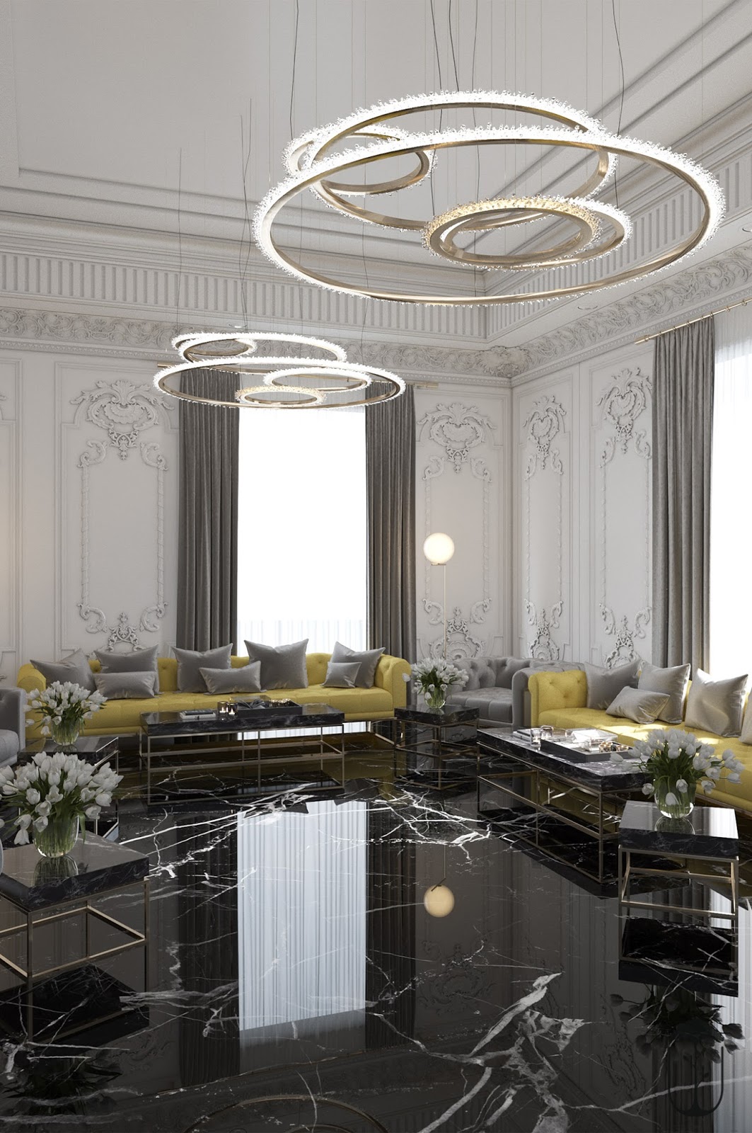 رخام رمادي غامق داخل مساحات داخلية راقية في أنتويرب تصميم داخلي 2021